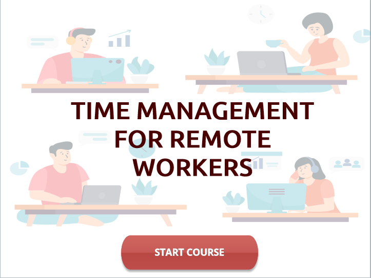Solution: This 5-10 minute interactive microlearning course equips remote workers with practical, easy-to-apply time management strategies. Through engaging activities - such as drag-and-drop interactions, realistic scenarios, and reflection prompts - learners identify common pitfalls and apply techniques like time blocking and boundary setting to improve focus, structure the day, and reclaim work-life balance.