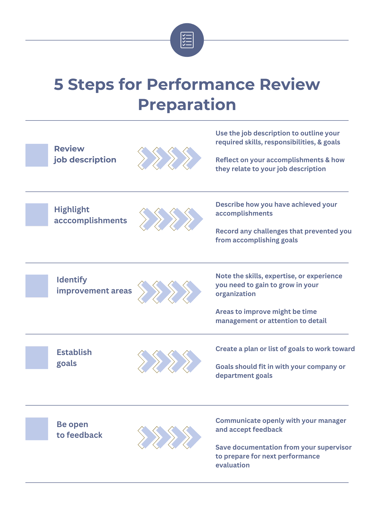 Solution: I developed a clear, easy-to-use checklist job aid that walks employees through key preparation steps for their performance review. This resource helps build confidence, reduce anxiety, and promote meaningful reflection ahead of review meetings.